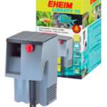 simply hanged on the top of the aquarium glass. With its adjustable inlet pipe, you determine its depth into the water and therefore the flow rate in the aquarium. The filtered water flows silently over water slides back into the tank. Thus perfect water circulation is created. The pump output can be easily regulated via the red control knob.