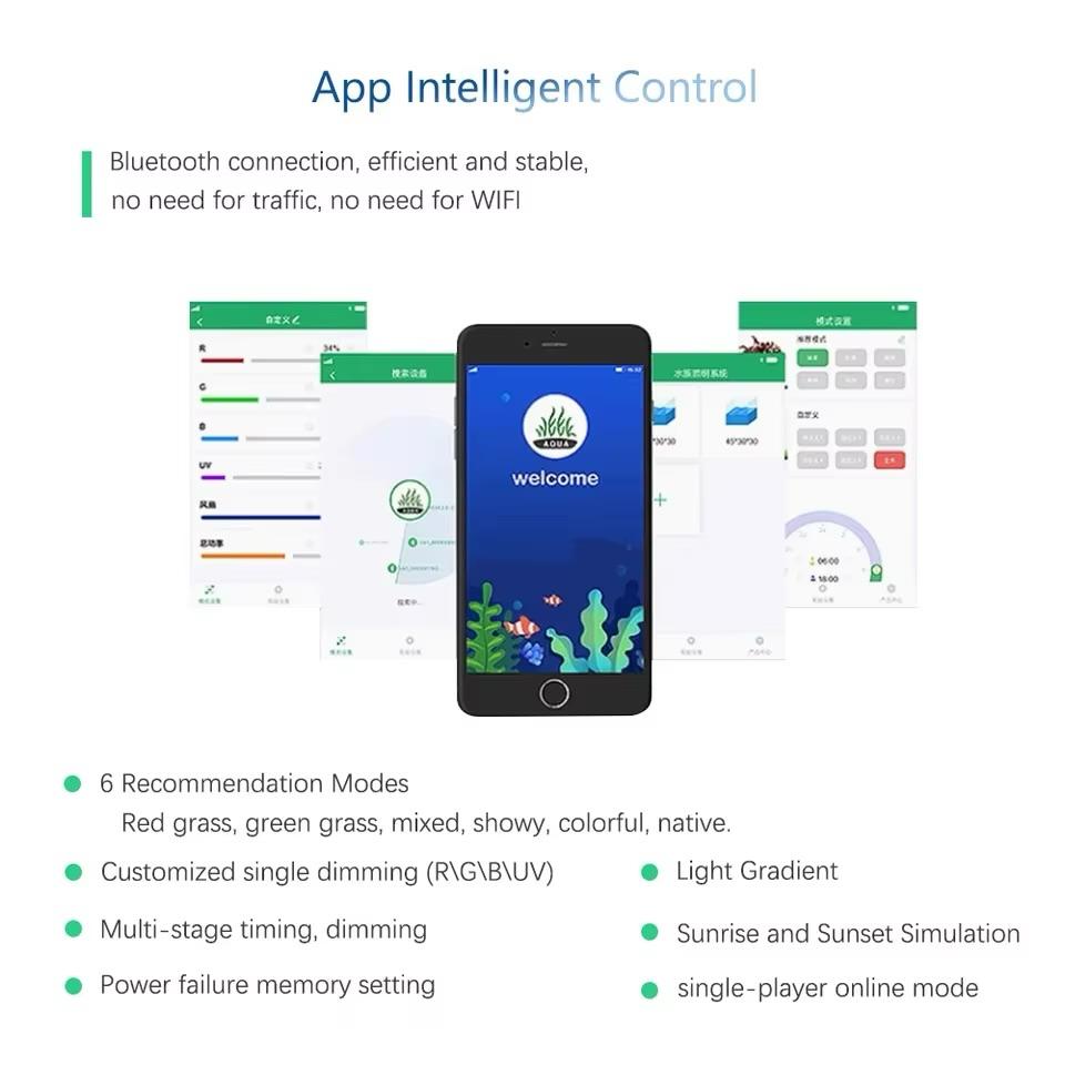 With advanced Bluetooth app programming, users can customize spectrum, brightness, sunrise and sunset simulation, and automated lighting schedules to replicate natural daylight cycles.