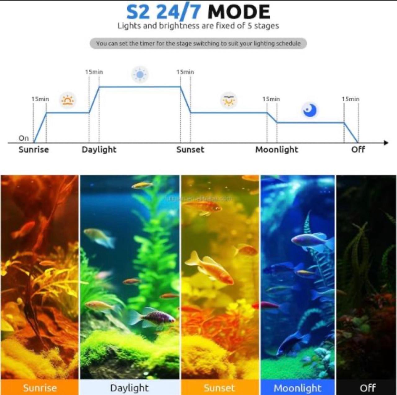 • The full-spectrum lighting supports plant photosynthesis, improves fish coloration, and creates a natural underwater environment.